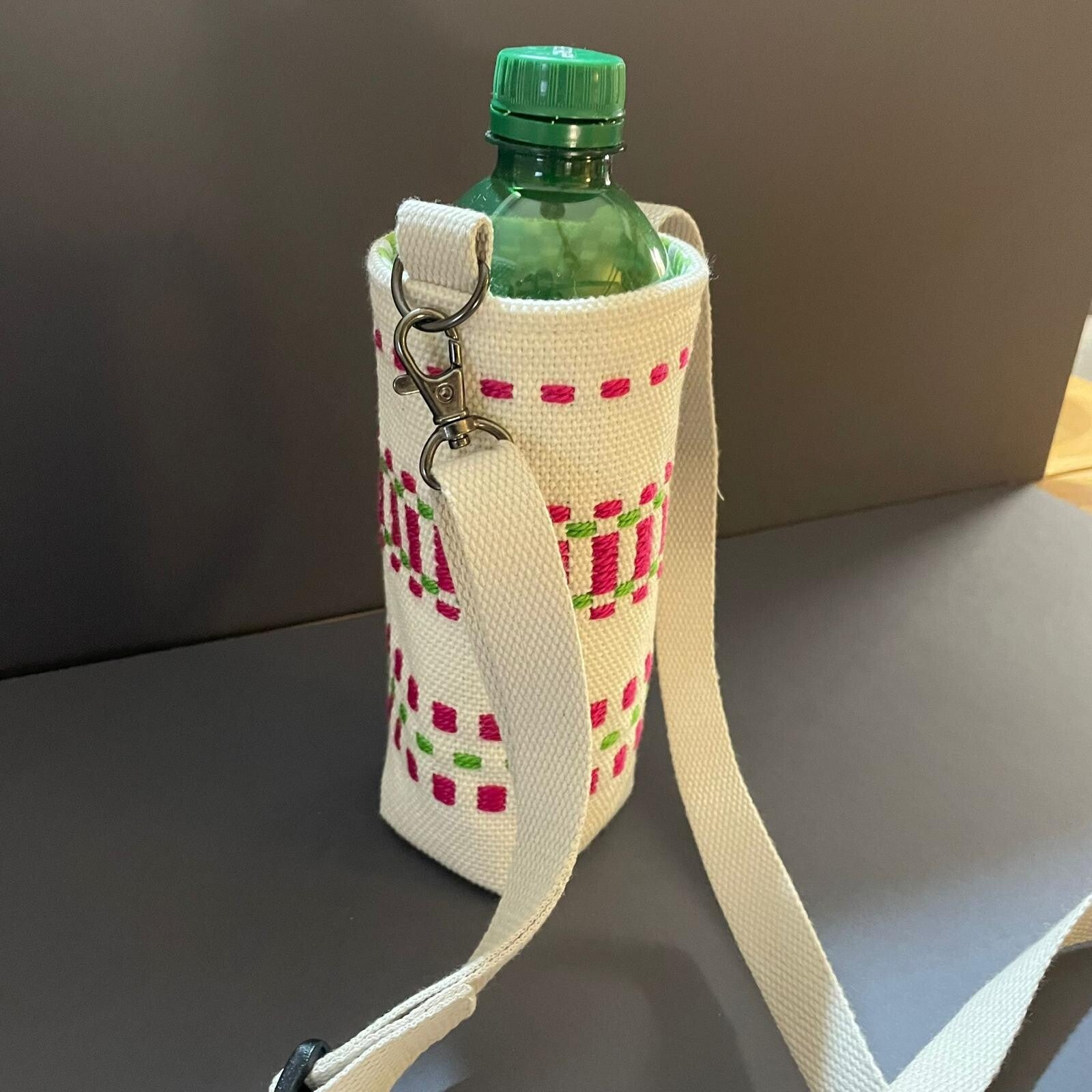 Magnifique porte-gourde ou bouteille avec une bandouillère. Divers coloris disponibles.